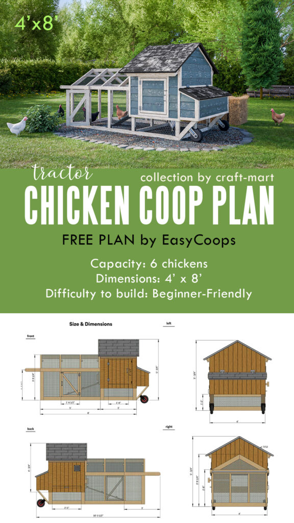 Do you live in the city, but want to enjoy the convenience of a movable chicken coop? This small chicken coop plan is beginner-friendly and can host up to 4 chickens. Overall, it is a perfect project to try and see if suburban farming is for you! Most importantly, it is suited for cities where ordinances restrict the keeping of large flocks.