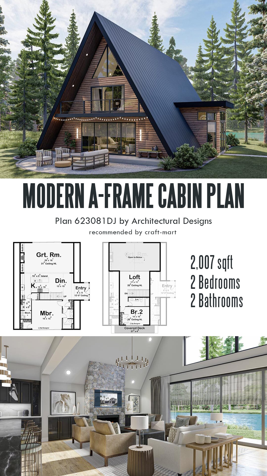 The side entry is a key feature of this 2007 sqft floor plan which allows outdoor access from the living area and a downstairs bedroom. An open layout of a great room/kitchen/dining area has a convenient pantry storage under the stairs and a practical island for family gatherings.