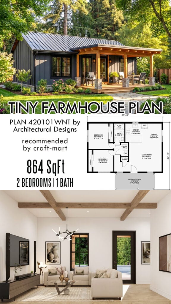 GET 825 SQFT MODERN TINY FARMHOUSE PLAN HERE