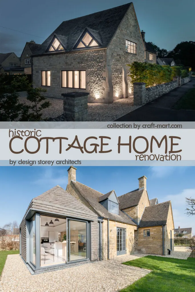 This cozy cottage was built in the traditional Cotswolds town of Chipping Campden, UK, inspired by the Arts & Crafts heritage of the town. Bringing an old cottage into the 21st century involved several innovations, including new triangular dormers, a unique casement hung at 45 degrees, a modern tile pavilion & ash cladding.